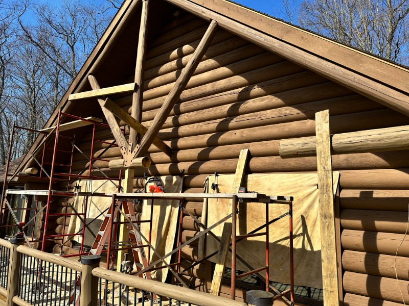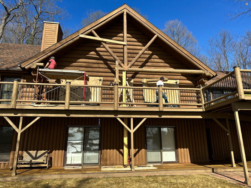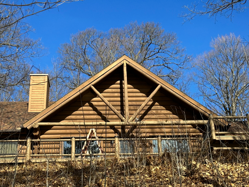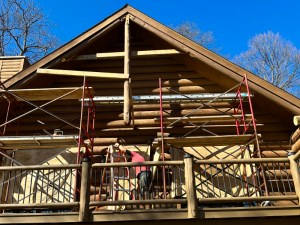 It’s a company that we’ve used once before, shortly after we moved here. There was an end piece of a log that was rotting and they replaced it and went around the whole house to caulk any spaces that needed it.