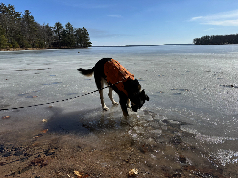 As the warm afternoon eliminated most of the new ice that had formed the night before, Cyndie and I let Asher have some fun along the shoreline.