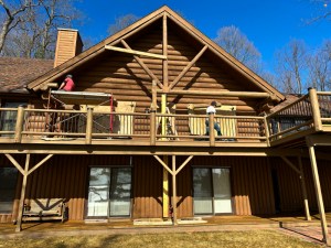 Last year they agreed to do the job of resealing the logs of the entire house but were iffy about whether they could fit it in before days got too cold. When it became obvious they wouldn’t make it before winter, they promised we would be early on the spring schedule this year.