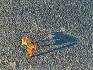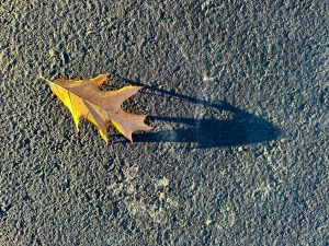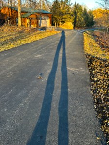 These days the stroll up to the house after feeding the horses is happening when the low angle of the sun is casting long shadows. The leaf shadows look like outlines of science-fiction creatures.