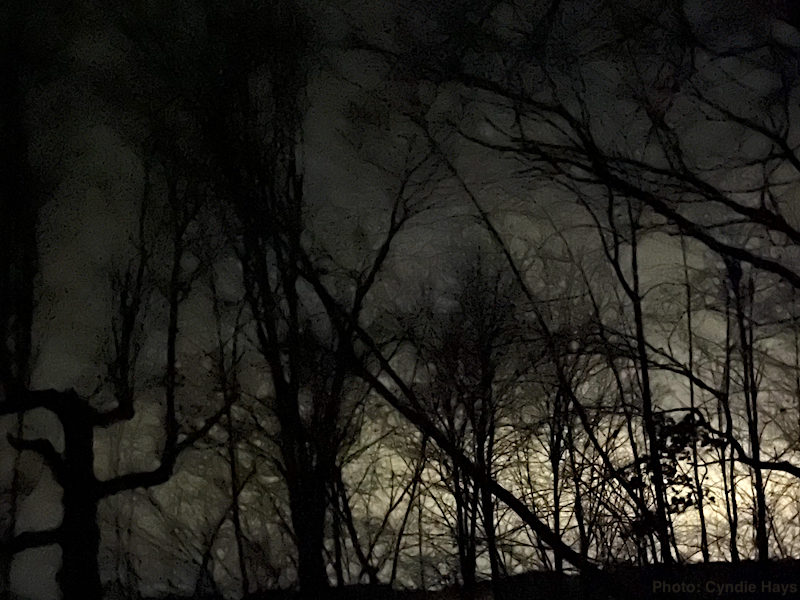 There is a lot of action in some of those tree trunks. I don’t quite understand the source of light behind those clouds. Was it really just the last traces of sunlight so many minutes past sunset? I cannot confirm.