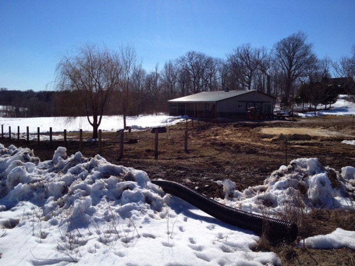 I was exploring old images and came upon these shots from 2013, our first spring on this property. We were in the process of installing new fencing to create the paddocks outside the barn and trying to build the hay shed.
