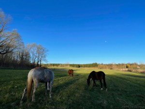 They provide both solace and distraction from our grief over the decimation of the chickens. We are learning how to frame our recent experience losing chickens and trying to soothe the angst of relocated rescue Thoroughbreds.