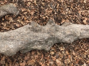 I would love to have been watching the action when this unlikely balance resulted. We’ve got a new “situation” not far off-trail in our woods today.