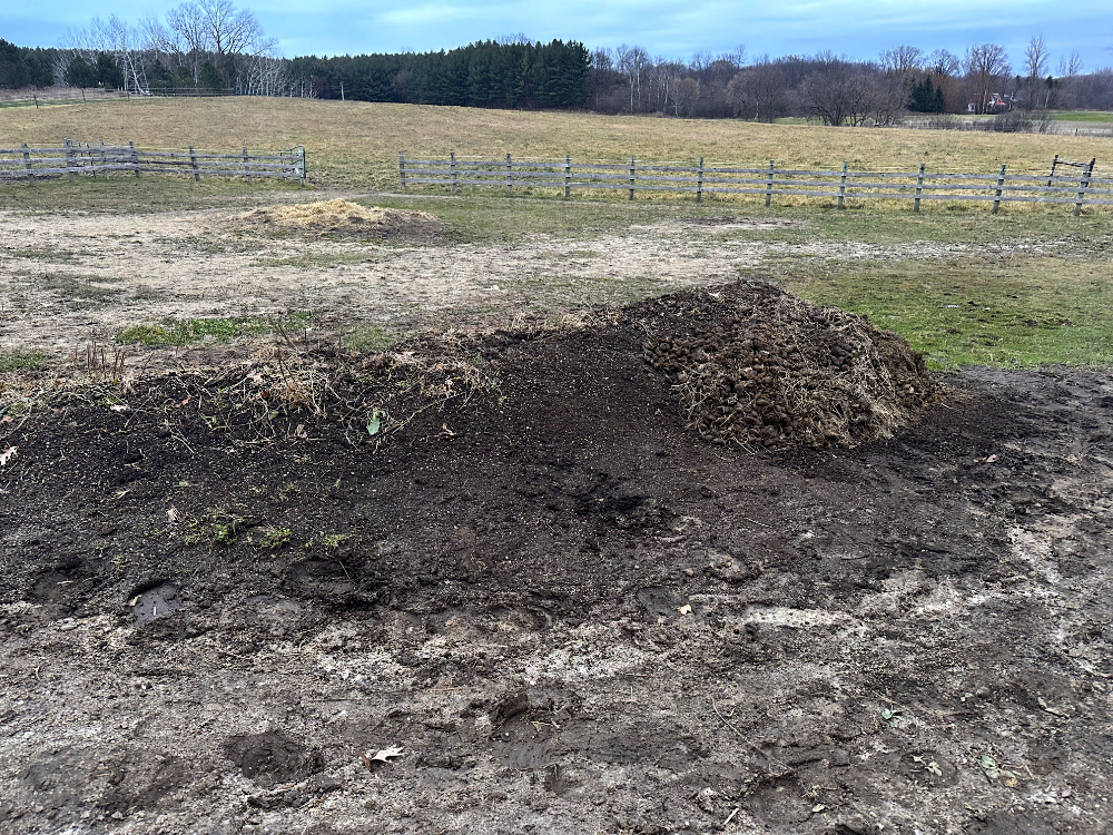 My composting methods are far short of academic control of the carbon/nitrogen ratio or covering the piles with a tarp to control moisture. Honestly, the primary goal is to reduce the volume of manure by getting it to break down. The fact that it produces wonderfully fertile soil in the end is a welcome bonus.