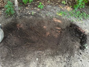 One thing I have learned about allowing my piles of compost to rest on the bare ground, surrounding trees are not bashful about reaching up into the piles with their fibrous root structures. When scooping up the compost from the bottom of the mounds, it becomes a battle of tines hooking on thickets of growth that don’t give in easily.