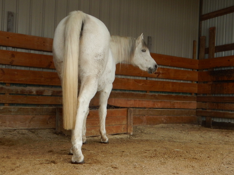 Poor Dezirea is fighting a bug, we think. We didn’t notice anything amiss until serving up the pans of morning feed. Dezi had no interest. It was at that point that plans for the day were scrapped and caring for our senior mare became the focus of our energies.