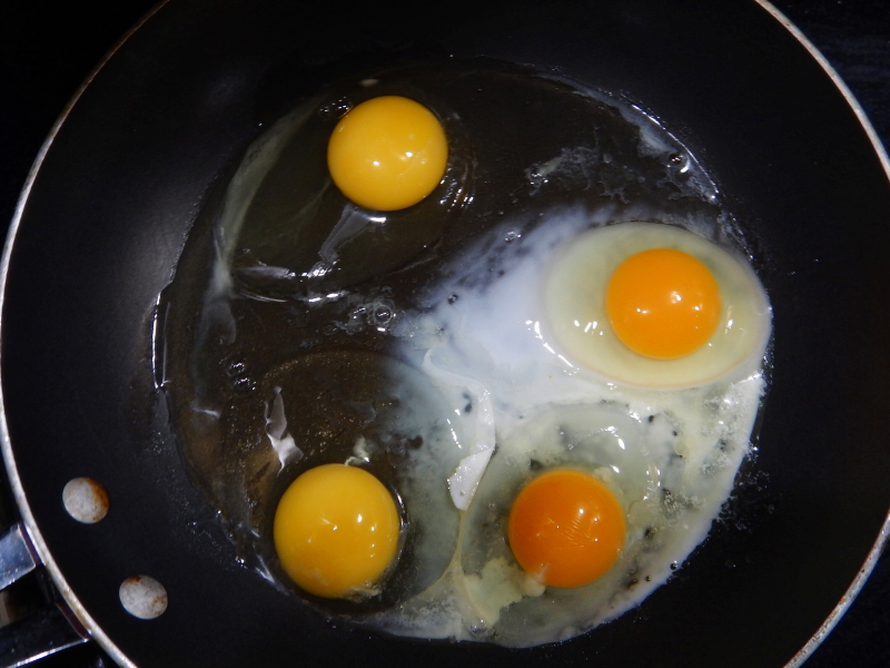 Things are growing more orange around here. Yesterday at breakfast, Cyndie called me to come look at the difference in color of our eggs, compared to the ones purchased at the grocery store. Looks like the free-range diet of our three chickens is producing deep color in the yolks, seen on the right, below.
