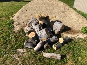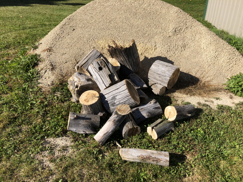 The old scratching post is now just a pile of cut-but-unsplit firewood.