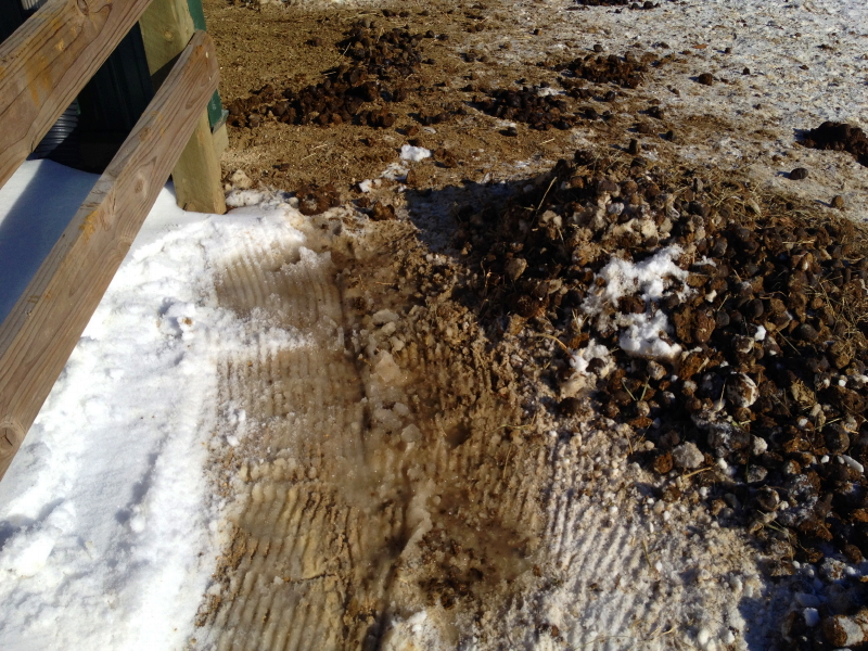 Hey, I just noticed this image also shows a pretty clear representation of how good the footing looks where we have limestone screenings compared to how bad it is everywhere else this time of year. This solution sure has worked out well for us.