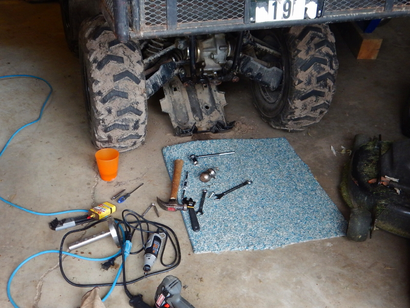 It has taken me until yesterday to finally get the hitch plate remounted on the ATV, because of the difficulty I experienced removing those two sheared off bolts. Well, and also due to the fact I spend most of my days away at the day-job instead of working on things that need fixing at home!