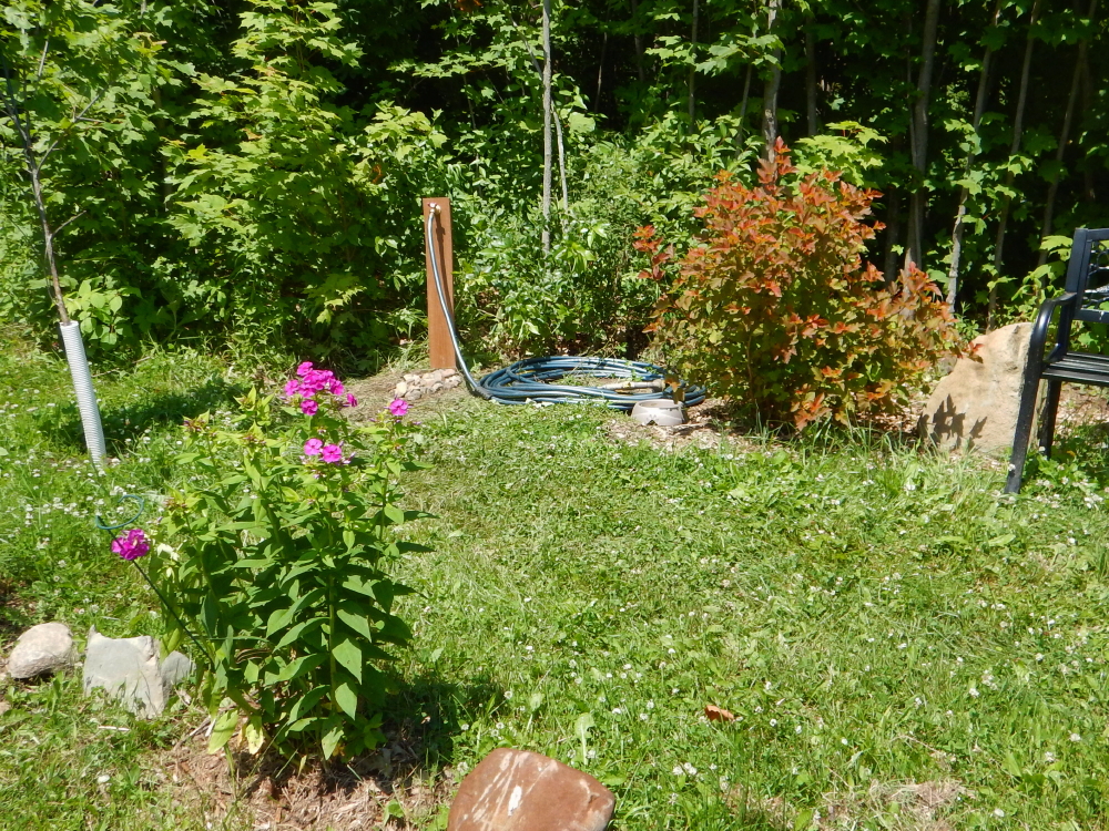 On the right is a hydrangea that Cyndie planted beside her labyrinth. When we moved the gazebo last year, that tree needed to be relocated to the opposite perimeter.