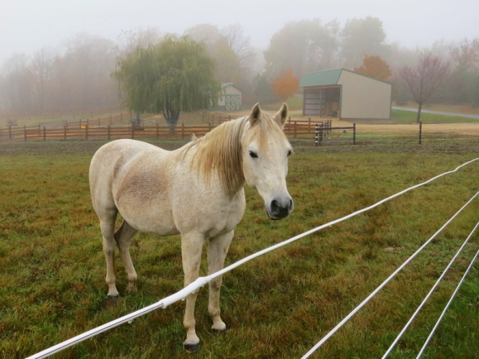 One other word that came to mind was, magical. As in, magician. One morning we found her calmly grazing all by herself inside the web-fenced arena space despite the gate being closed. She somehow either jumped or high-stepped her way over that webbing without tipping a post or tangling a hoof.