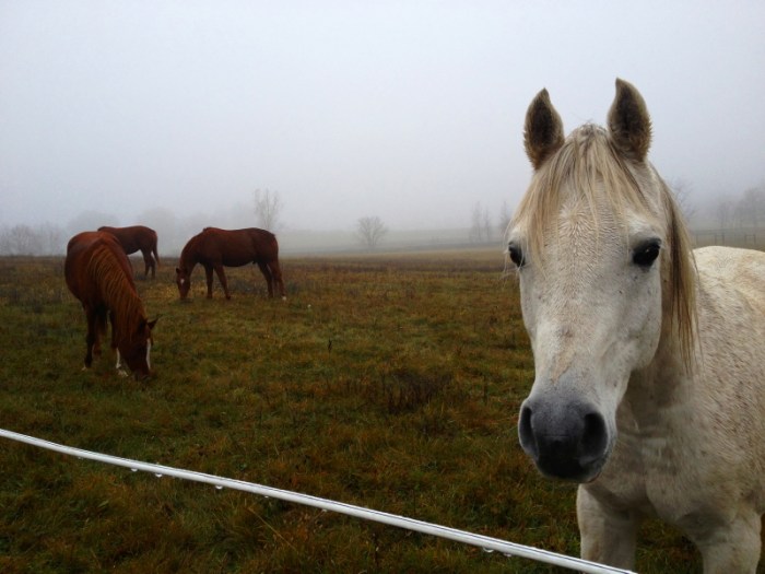 It seems illogical to me that they would prefer dry hay bales over the two large fields of fresh grass that we provide them full access to day and night, but I’m not a horse. I trust they know why they make the choices about what to eat.