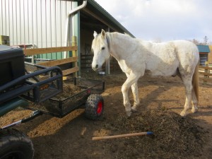 Cayenne also maintained the neatest stall out of all four horses. Despite her penchant for painting the back wall with her poop, the rest of the shavings on her floor basically remained clean. I guess she reserved her mess for the water bucket in that stall. She had a habit of soaking her mouthfull of hay or feed pellets in the water as she ate. Made her bucket a murky disaster by the time we came around to refill them.