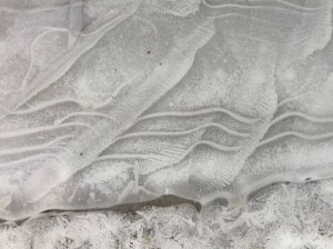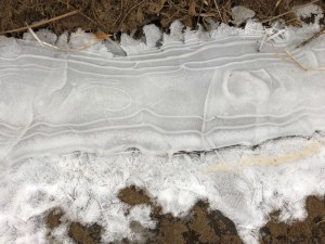 When Delilah and I were surveying the pasture for hazardous ice on Saturday, we instead found artistic ice formations.