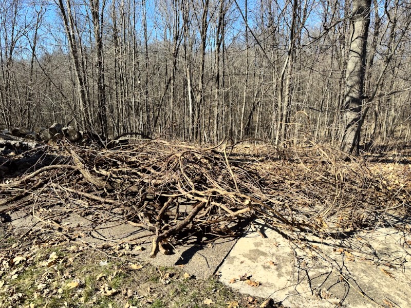 When I went in for lunch, Cyndie stayed outside to putter on other projects weighing on her mind. I got a text from her that she came upon a pile of vines we had missed.