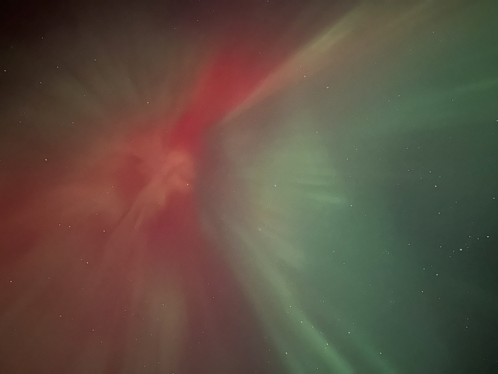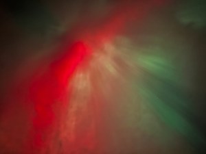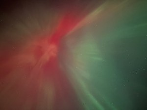 We expected to see the radiating colors to the north, but we found that the display was happening straight up over our heads and stretched across the sky from west to east.