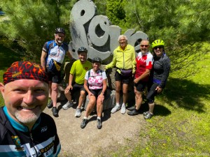 My biking group did this same warm-up ride last year but I failed to realize we were going right past the Wilkus’ place. Upon figuring it out, Rich Gordon and I stopped to surprise them. This year, I warned Mike that I’d be coming by, not mentioning the part about bringing 8 other cyclists with me.