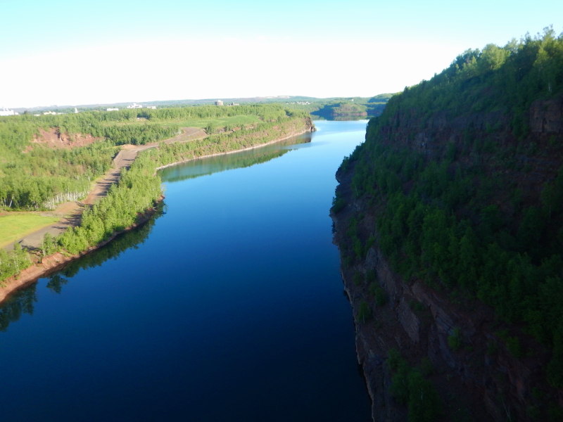 View from the bridge down to Roucheleau mine lake, a former iron mine partially filled with groundwater.