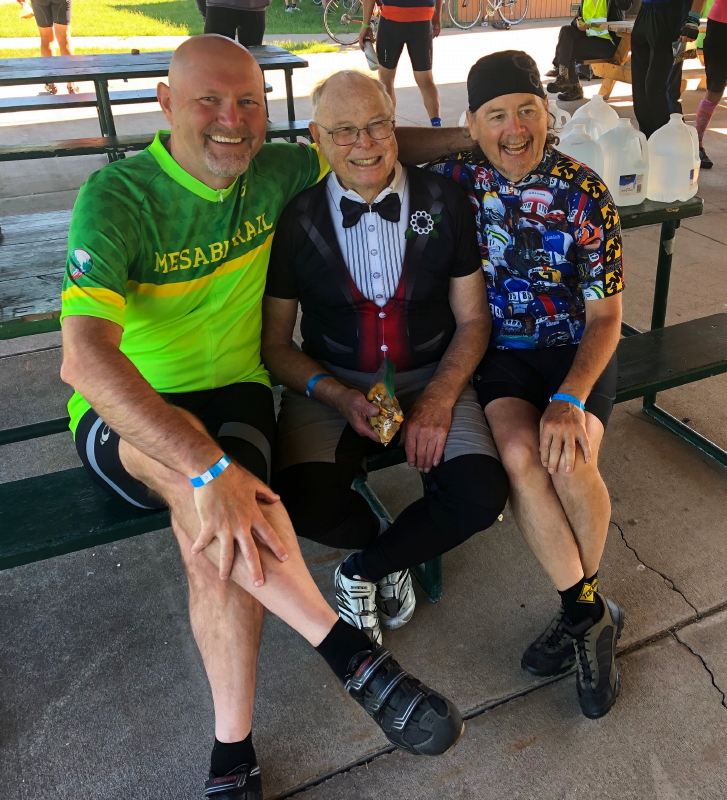 Hanging out with the best-dressed guy on the ride. Gary, you do look dashing in that jersey!