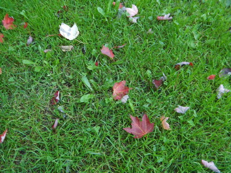 Last week when I mowed, I noticed this sprinkling of color in the grass beneath the maple tree that always turns the earliest. It’s become a reliable harbinger of the beginning of the end of summer for us.