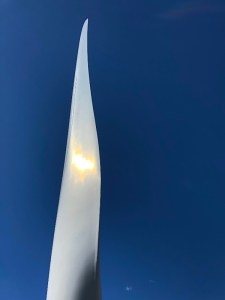 I framed this picture to remove any visual references that reveal this blade was attached to the ground and pointing straight up into the sky. These blades are massively large.