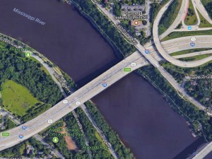 Then, I and all the many vehicles around me reached the bridge crossing the Mississippi river, just south of the 35W bridge. There we sat.