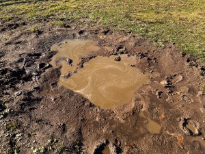 It appears that Mia was engaged in a little horseplay in the dregs of the shrinking Paddock Lake.