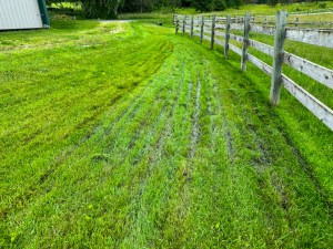 To warm up my skills, I started with the area behind the barn where it is drier, the grass is well-established, and closer to flat than most of the rest of our grass areas.