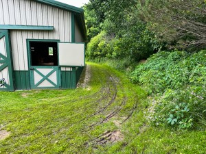 The alleyway behind the barn is as wet as ever, to the point of being practically undriveable.