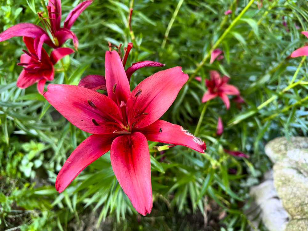 The multiple colors of lily blossoms exploding around here lately look a little like a fireworks display.