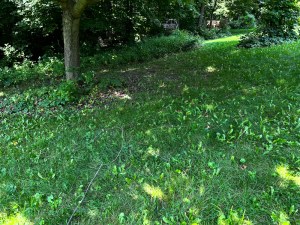 The grass that the mower can’t reach is beginning to swallow the rocks. At least the pathway becomes clearly evident upon a fresh cut.