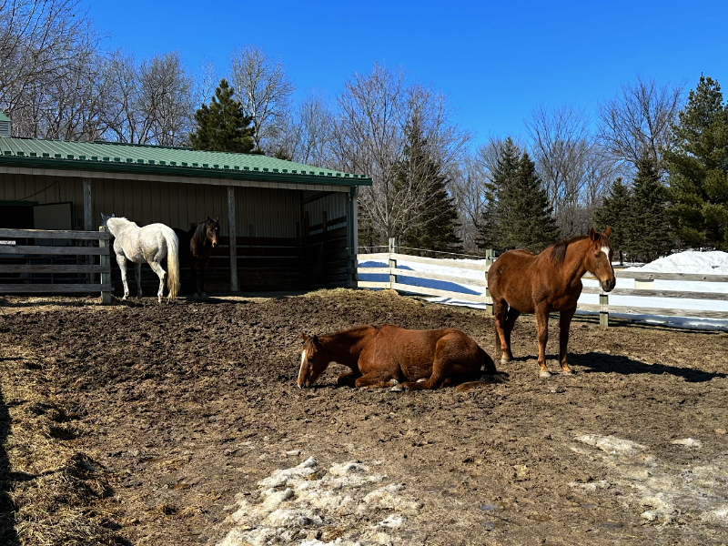 The only downside I’ve seen is the dustiness of the screenings as a ground cover. Horses repeatedly stomp their feet to shake off flies and flies are relentless, so there is a non-stop kicking up of dust.