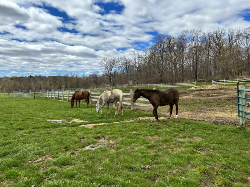 Meanwhile, the horses are having fun because we have been opening up the hay field to them again during the daytime.
