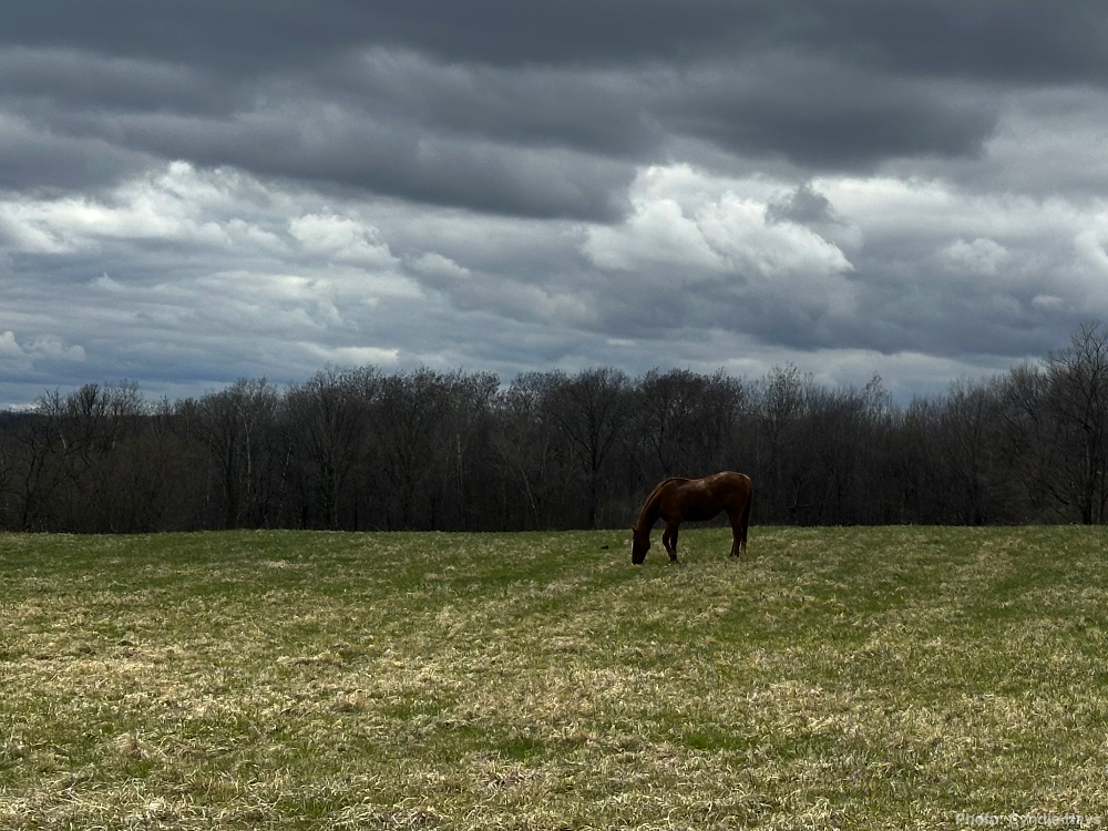 We are trying something different this year. Instead of confining the horses to the paddocks for a few weeks to protect new growth in the fields, we have left the gates open. The horses are getting a natural, gradual adjustment to fresh grass grazing this year instead of the controlled exposure we have done in the past, where we increase their access time in small increments each day.