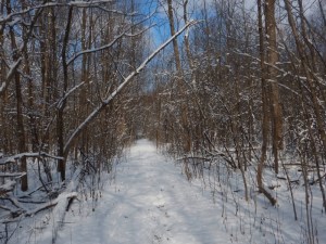 Most of the ground is still too warm for the snow to last. The image of our woods below provides a clear demonstration of the difference between the relative warmth of the ground, compared to the above-ground branches that are cold enough the snow doesn’t melt.