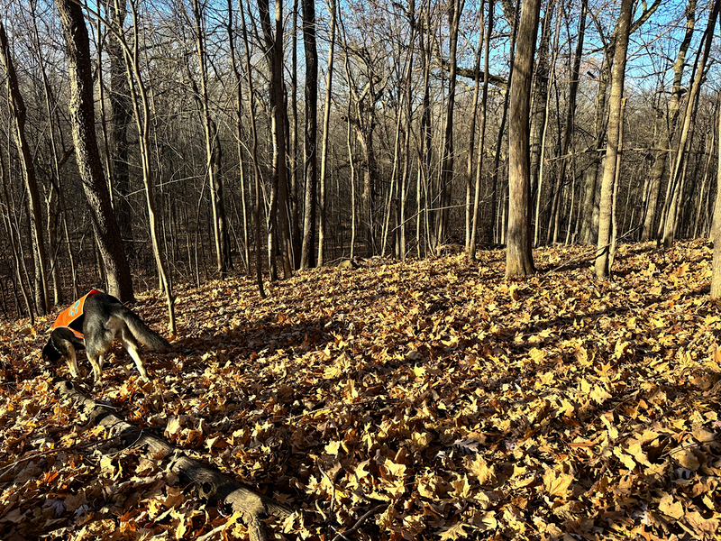 Asher seemed to be enjoying the unusually nice weather as well, and it had him romping playfully all over the place. When I decided to try raking some leaves, he behaved like I was making piles for him to race through and kick all over the place.