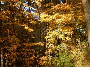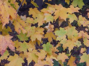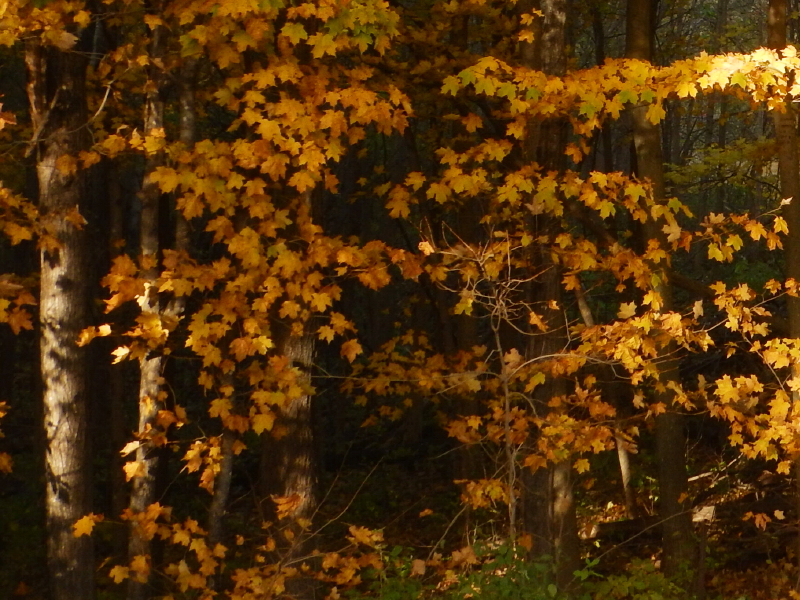 I’m afraid that by the time November arrives, we won’t have any trees with leaves left in them. They are falling fast and furious now, even though some leaves are still pretty green.