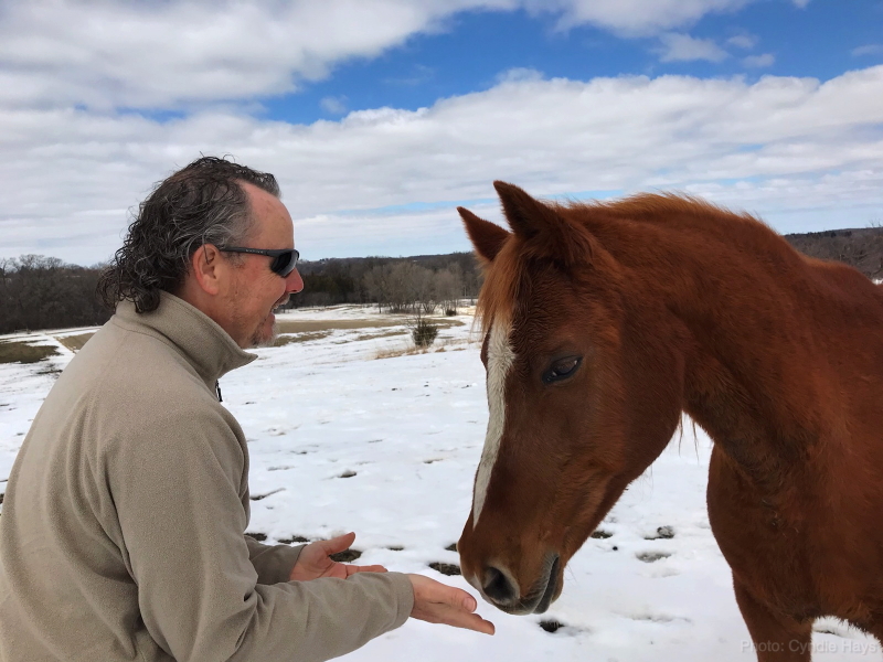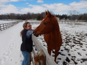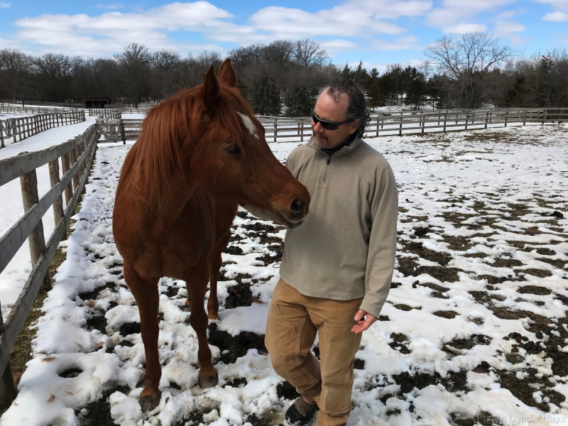 Yesterday, Cyndie was in the vicinity enabling her to pay a visit to our horses at their current home a couple hours west of us. I am living the experience vicariously, aided by pictures.