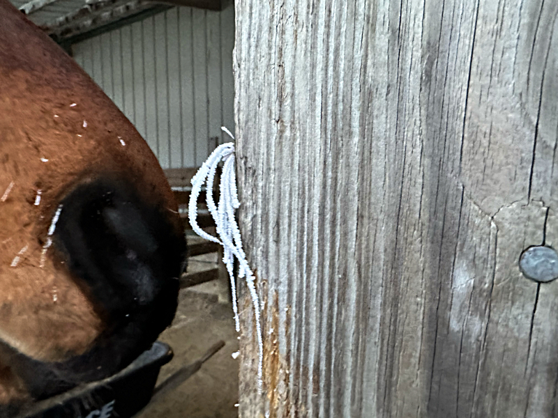We took the blankets off the horses to let them have a break from that constant contact on their hides. They’ve done incredibly well wearing them for over a week with almost no problems. One of them ripped a bite out of Mia’s blanket and Mix unbuckled a strap under her belly leaving half the blanket sliding off to the side Saturday, but those were the only issues that occurred this session.