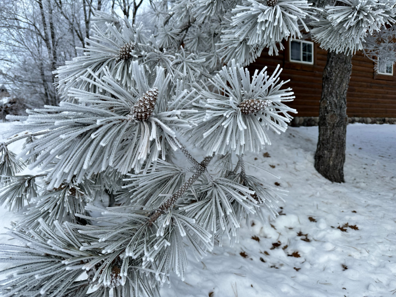 The morning frost highlighted horse hair snagged on the overhang support beam that gets used as a scratching post. It also made our evergreen trees look like the flocked white Christmas trees that I always thought were ridiculous when I was a kid. In my limited knowledge, trees weren’t white. Why would they make them that way?