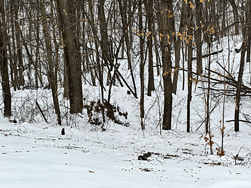 The squirrels out our windows are going gangbusters after the acorns under the snowpack.