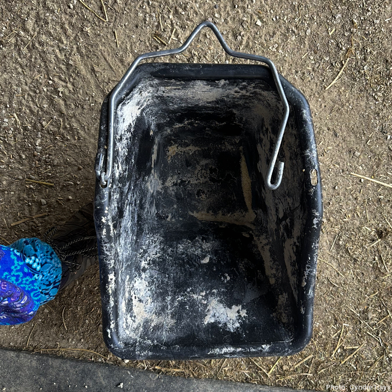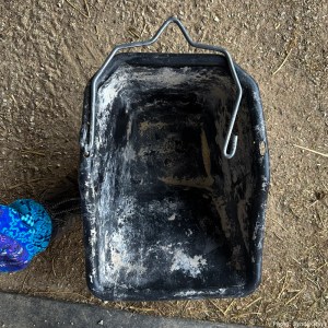 As soon as I finish mowing around the fence, I will energize the wires again and re-train the horses to avoid the fences at all costs. It’s probably not that big of an issue for them since they’ve now turned their attention to abusing the feed buckets instead.