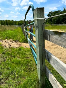 Having learned a lesson when I became overly anxious the time Swings escaped the fences, I didn’t even approach the horses. Offering a friendly, gentle greeting, I eased my way directly toward the barn, scanning the fences for some clue as to how they had gotten out.
