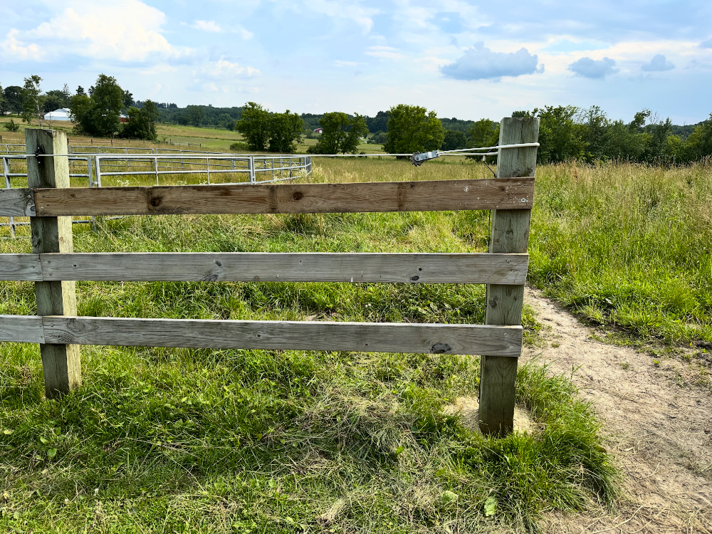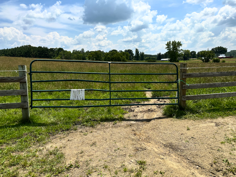 Over the phone, we strategized with Pam and John to guide them to materials to temporarily secure the gate and assure them all was fine, even as Cyndie and I marveled over the outrageousness of what we were seeing and the incident we were imagining had happened. We also had them close that gate by the road as an additional precaution. The farmer can open it when he finally arrives.