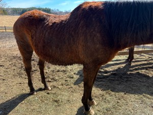 In the afternoon, when I stopped by for a visit with the lovely beasts, I noticed Swings’ coat was wavy to a degree that would trigger jealousy in a lot of women I know.