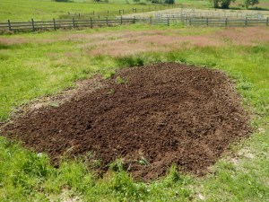 There was quite a large accumulation inside the paddock left over from winter that I was planning to convert into a high spot over a drain tile that I didn’t want the horses to collapse from walking over it when the ground was soft. The chickens are doing their darndest to spread it flat, so I have given up on maintaining a pile that will “cook” to compost and am just spreading it out to dry.