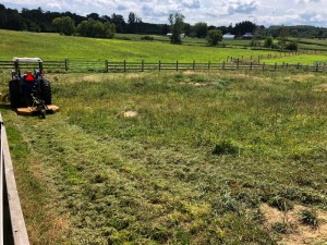 Maybe that covering will slow new growth so I won’t have to mow it more than one more time by the end of the summer. I don’t enjoy operating the diesel tractor so close to fences, especially inside the corners.