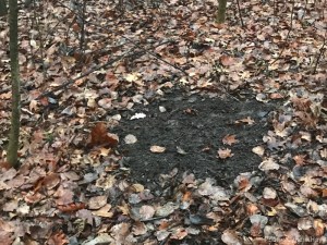 Cyndie came upon this spot of cleared leaves beside the trail yesterday morning.